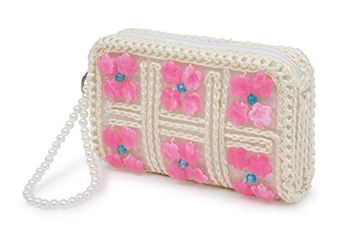 DonDon Porte-Monnaie pour Femme avec Plumes et Perles Beige Rose