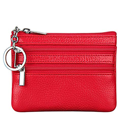 Porte-Monnaie en Cuir véritable pour Femme avec Porte-clés, Rouge, Taille Unique, Porte-Monnaie