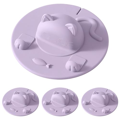 Couvercles de Tasse en Silicone,Lot de 4 Anti-Poussière Couvercle Mug,Motif Chat,avec Porte-sachet de Thé,pour Tasses,Mugs,Théières