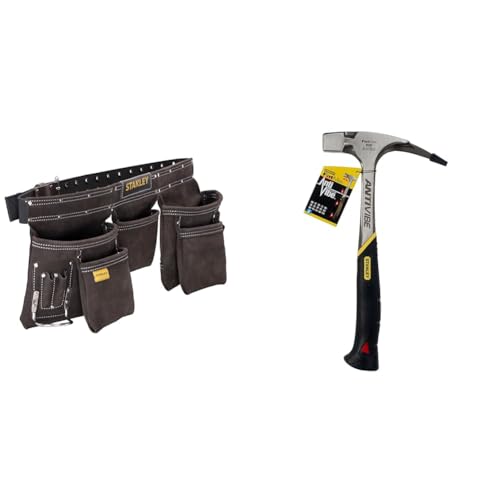 STANLEY Porte Outils Double Ceinture - Nombreuses Poches - Cuir de Qualité Supérieure & Stanley 1-51-937 Gamme Fatmax Antivibe - Arrache-Clous Charpentier- Tête et manche Forgés en Acier