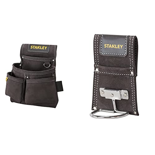 Stanley Stst1-80116 Porte-Outils en Cuir Qualité Supérieure - 4 Poches - Accroche Spéciale Mètre - Renforts par Rivets - 30 X 7 X 33 Cm & STST1-80117 Porte-Marteau en Cuir, Noir