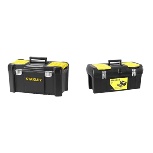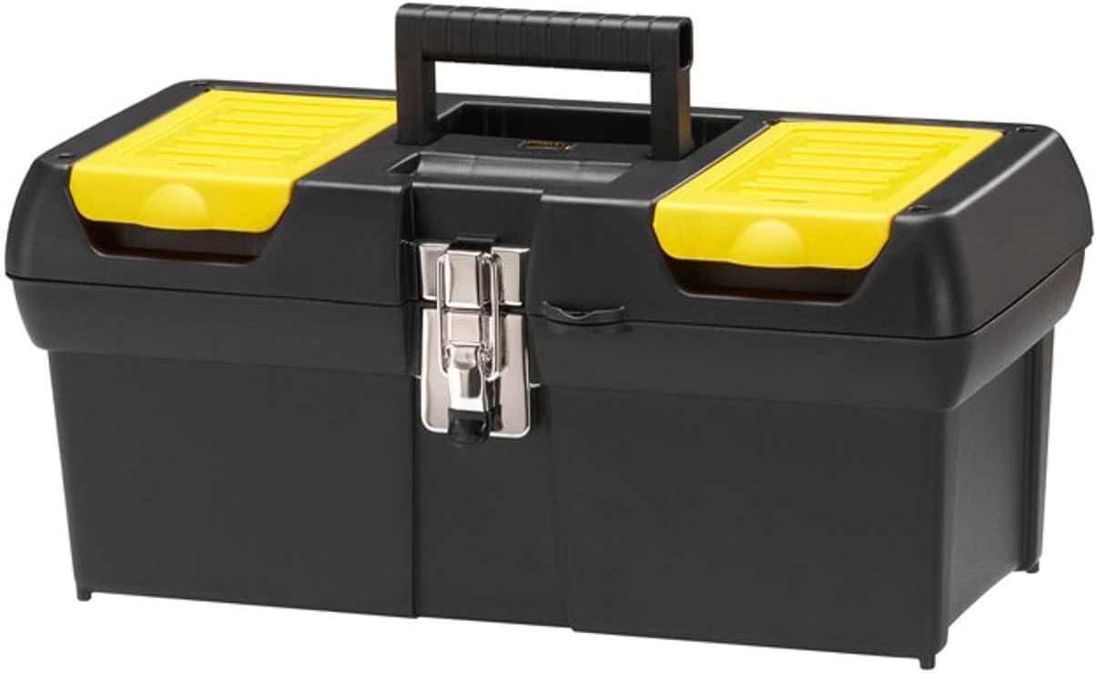 JEXNOVASHOP-Stanley 1-92-065 Boite A Outils 2 Organiseurs Sur Le Couvercle - Robuste - Attaches métalliques Résistantes - Porte Outils Amovible - Poignée Articulée, 40.5 x 21 x 18,3 cm Jaune