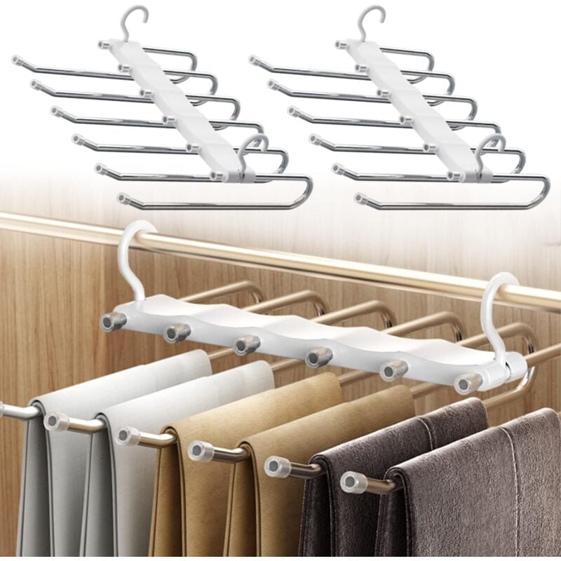 Sternstunde 6 en 1 Cintre Pantalon Gain De Place, Porte Pantalon Coulissant, Ceintres, Cintre Multifonctionnel Crochet Hook, Rangement Pantalon (2)