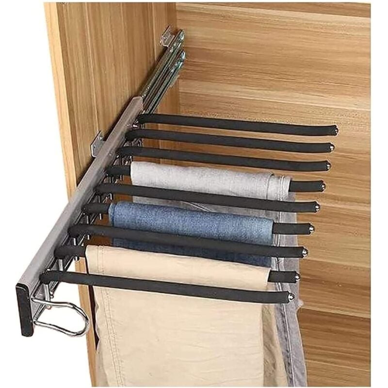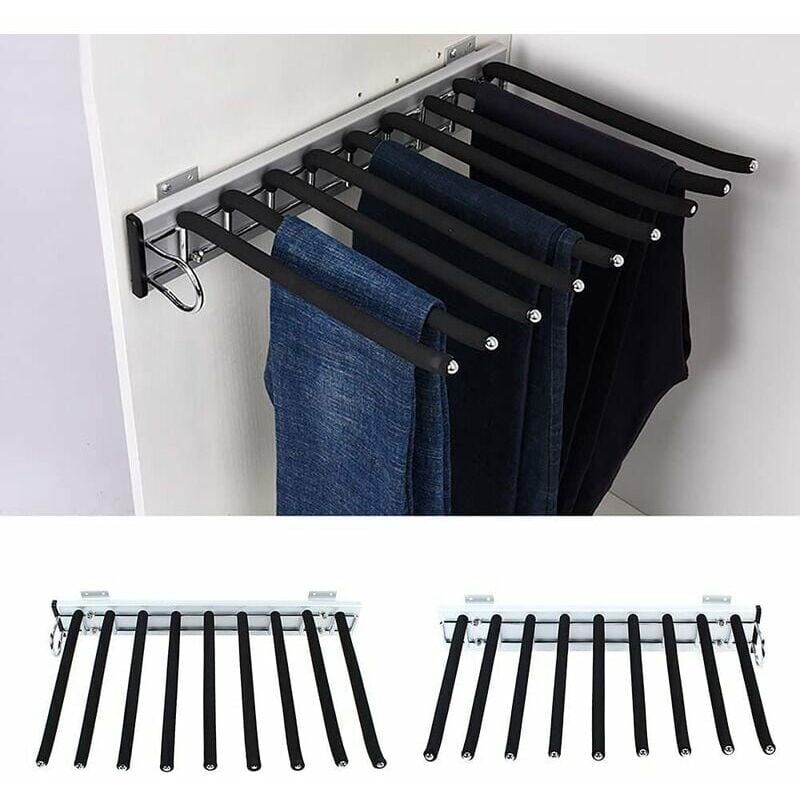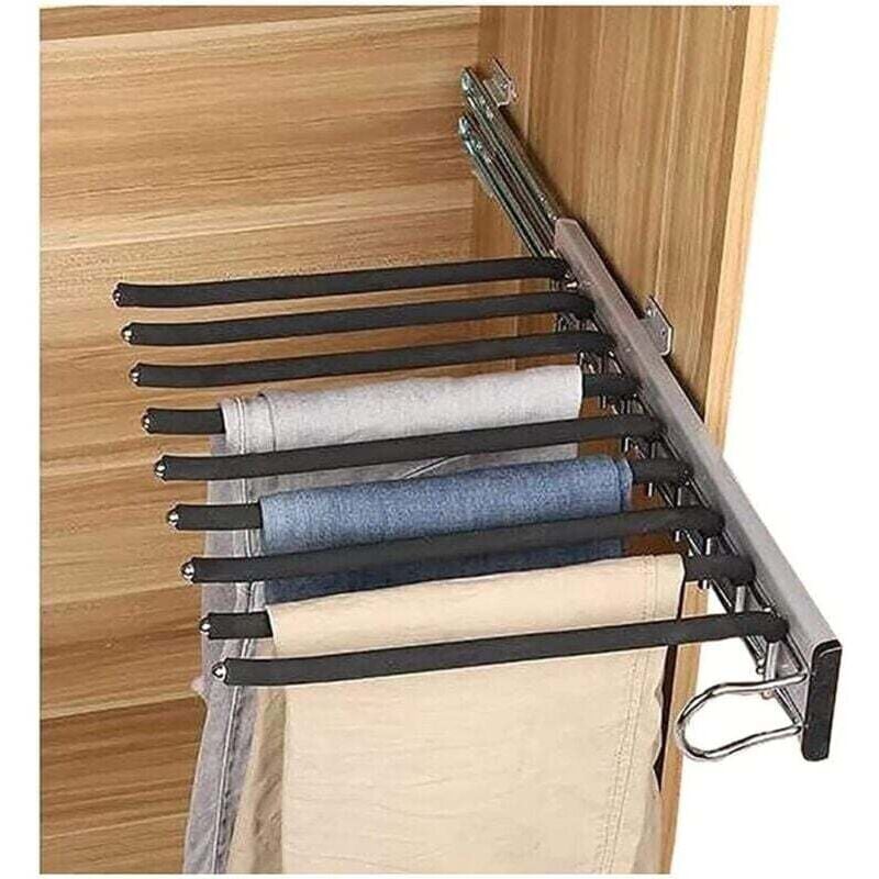 Cintres Porte-Pantalon Porte Pantalon Coulissant Acier Inoxydable Multifonction Extensible Antidérapant Porte Jeans 9 Tiges, Right,de Debuns