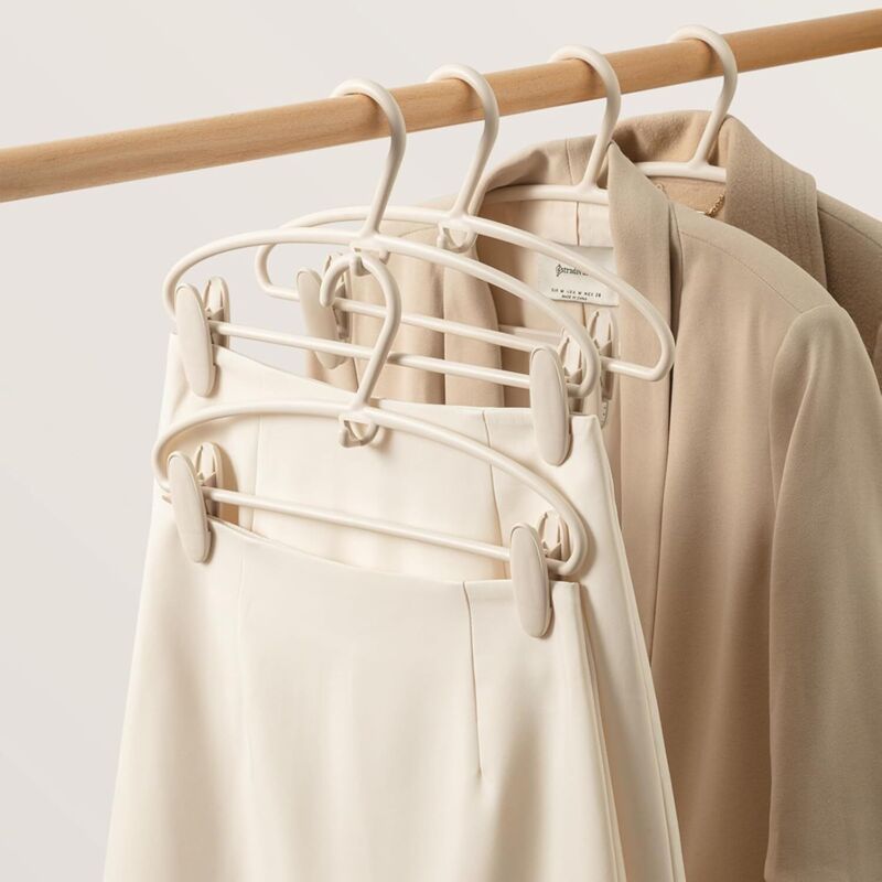 Cintres Porte-Pantalon Porte-Pantalon Coulissant Acier Inoxydable Multifonction Porte Pantalons Extractible Antidérapant Porte Jeans 22 Tiges, Beige