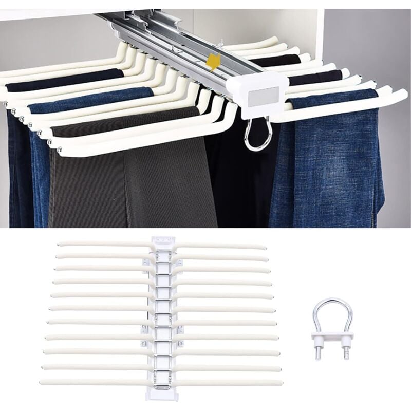 Porte-pantalon coulissant à 9 bras pour placard, barre de suspension en acier inoxydable, rail de suspension extensible pour pantalon, serviette,
