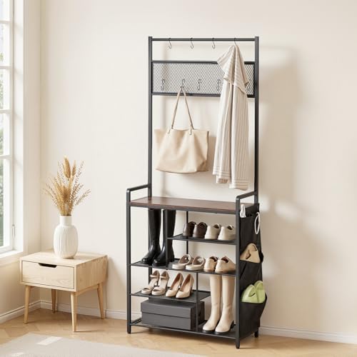 VEVOR Meuble d'Entrée 183 cm 3 Niveaux, Porte Manteaux avec Banc à Chaussures, Rangement pour Couloir Chambre Dressing et Salon, Vestiaire d'Entrée Autoportant, avec Tringle et Plusieurs Patères