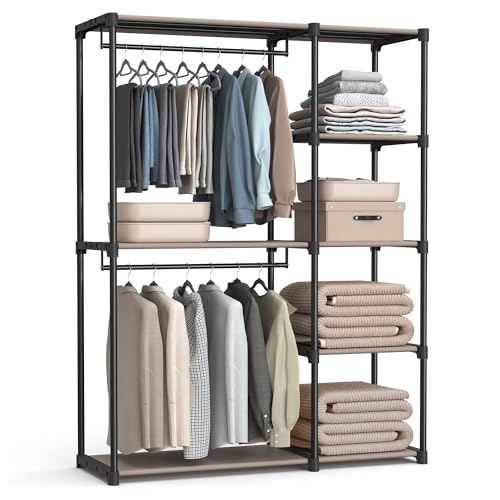 SONGMICS Armoire de Rangement, Penderie Pliable, Dressing, Armoire Métallique, avec Barres de Suspension, Porte-vêtements, pour Vestiaire, Chambre, 138 x 43 x 182 cm, Taupe RYG25R02