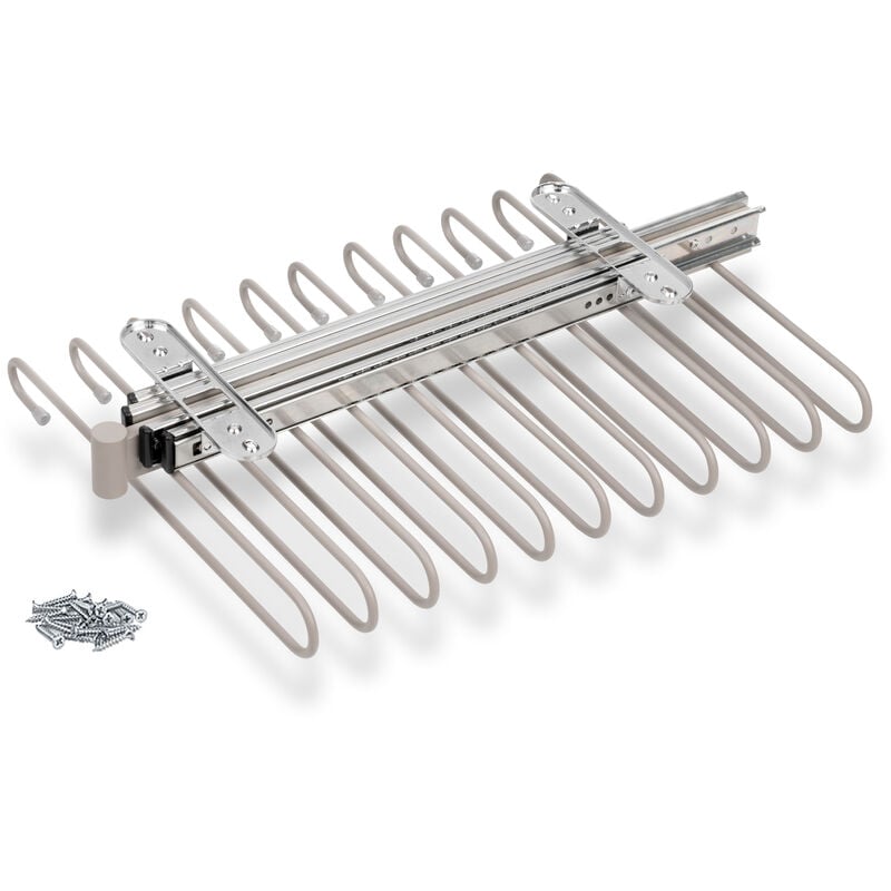 Emuca - Porte-Pantalons extractible pour Armoire, Range-Pantalon Coulissant pour 11 Pantalons, Peint Couleur Pierre texturé, Acier