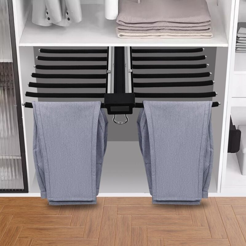 Porte-pantalons double rangée extensible pour armoire, pouvant accueillir 22 cintres à pantalons - entièrement recouvert de velours noir, capacité de