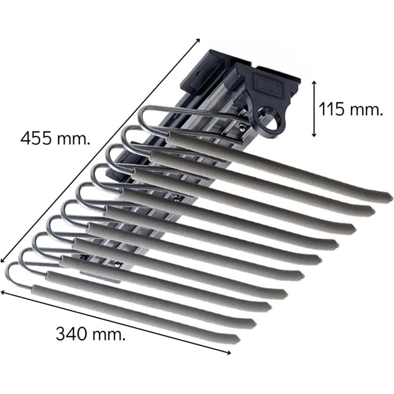 Emuca - Porte-Pantalons extractible, 11 tiges, Guides d'extraction Totale, Acier, Titane