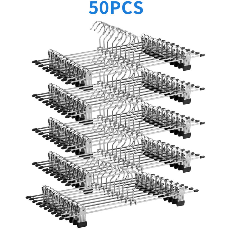 Lot de 50 Ceintre Métal pour Pantalon Cintres Porte Pantalons avec Deux Clips Réglables à 360 °pour Pantalons Jupes et Chaussettes