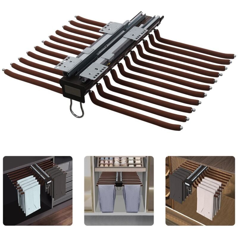 Porte-pantalons à double rangée, 22 barres de suspension, porte-pantalons extensible, cintre suspendu, porte-pantalons pour armoire - couleur café