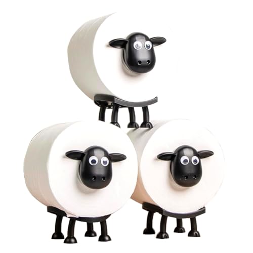 Lot de 3 Porte-Papier Toilette Mouton - Support Rouleau WC Décoratif en Bioplastique (16x9,5x8,5 cm) - sans Outil, Autoportant, Cadeau Original pour Salle de Bain, Noël & Maison