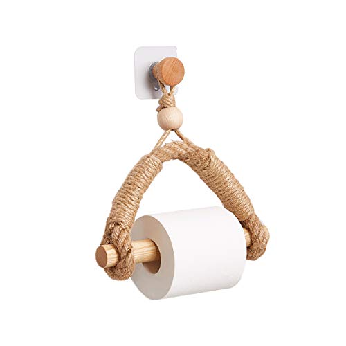 TentHome Porte-Papier Toilette Nordique Original Porte-Rouleau Papier Mural en Bois et Corde Rétro WC Salle de Bain Maison de Campagne (sans perçage, A)