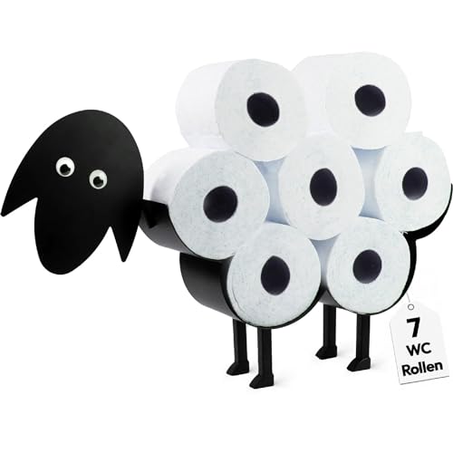 ZAXER Porte-papier toilette créatif mouton - Noir pour 7 rouleaux - Idéal pour salle de bain ou espaces publics - Design original - Hauteur 34 cm - Longueur 53 cm