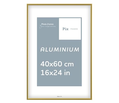 Pix FRAMES Cadre Photo Mural 40x60 cm - Cadre Mural en Aluminium - Cadres Photos avec Vitres en Acrylique - Encadrement Photo à Suspendre et à Poser - Porte-photo de Nombreux Formats - Or