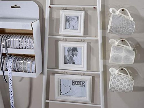 DRW Cadre photo multiple en bois en forme d'échelle à poser au sol ou à suspendre, blanc, 32 x 60 cm