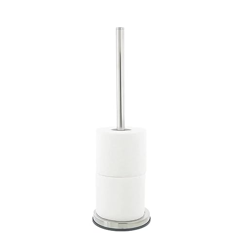 MSV - Brosse WC Porte-Balai Toilette Inagua - Ensemble WC à Poser en Polystyrène - Manche en Acier Inoxydable - Couleur Gris Foncé - Tête de Brosse Échangeable