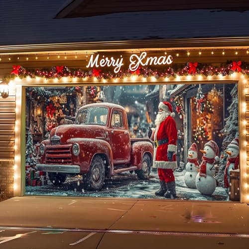 Décoration de porte de garage de Noël, bannière de porte de garage, Père Noël, bonhomme de neige, fresque murale de Noël pour porte de garage, toile de fond murale pour photo, extérieur, intérieur