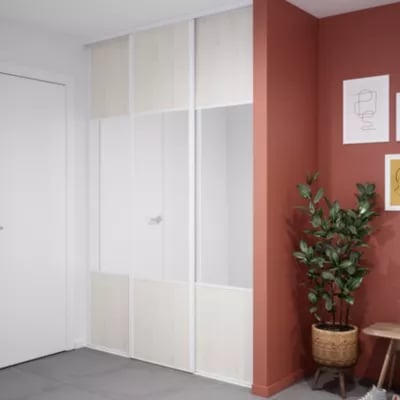 Porte de placard coulissante atelier bois nordique profil blanc GoodHome Arius H. 248,5 x L. 91.2 cm + amortisseurs