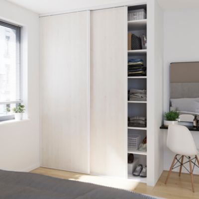 Porte de placard coulissante bois nordique profil blanc GoodHome Arius H. 248,5 x L. 77.2 cm + amortisseurs