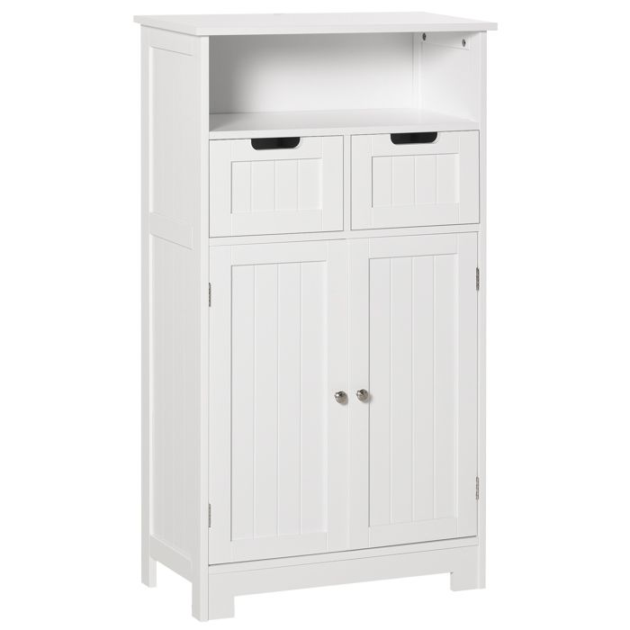 Meuble de salle de bain - kleankin - rangement 2 tiroirs niche placard porte étagère - bois - 60x30x109cm - blanc