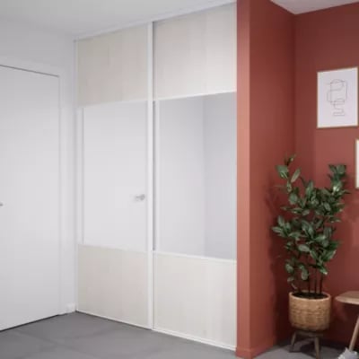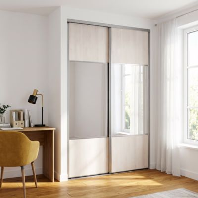 Porte de placard coulissante avec miroir bois nordique profil blanc GoodHome Arius H. 248,5 x L. 92.2 cm + amortisseurs