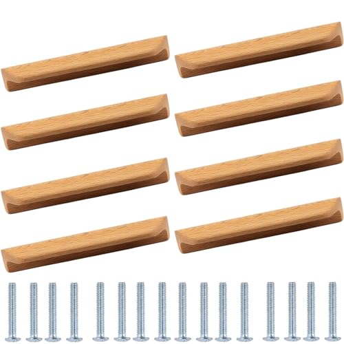 Poignées de Tiroir de Cuisine en Bois Massif Poignées de Porte de Placard en Bois Massif Couleur Bois Massif Poignées de Placard en Bois Poignées de Tiroir de Penderie en Bois Hêtre 192 mm Lot de 6