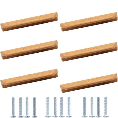 Poignées de Tiroir de Cuisine en Bois Massif Poignées de Porte de Placard en Bois Massif Couleur Bois Massif Poignées de Placard en Bois Poignées de Tiroir de Penderie en Bois Hêtre 96 mm Lot de 6