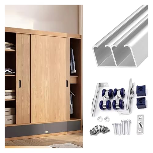 kit porte coulissante rail Kit De Quincaillerie Pour Porte De Grange Coulissante Pour Mini Petite Armoire, Rails Et Rouleaux Pour Porte De Placard Coulissante En Bois Double(Silver,8.2ft/250cm)