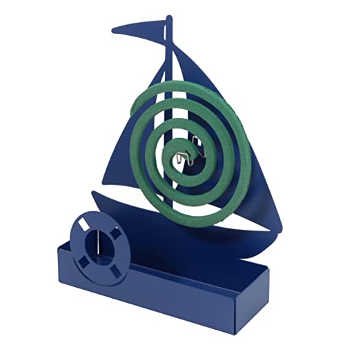 Baroni Home Support Spirale Anti-Moustiques, Porte-Encens, Porte-Plante en Métal pour Intérieur et Extérieur, 17x5x18 cm, Bateau à Voile, Bleu