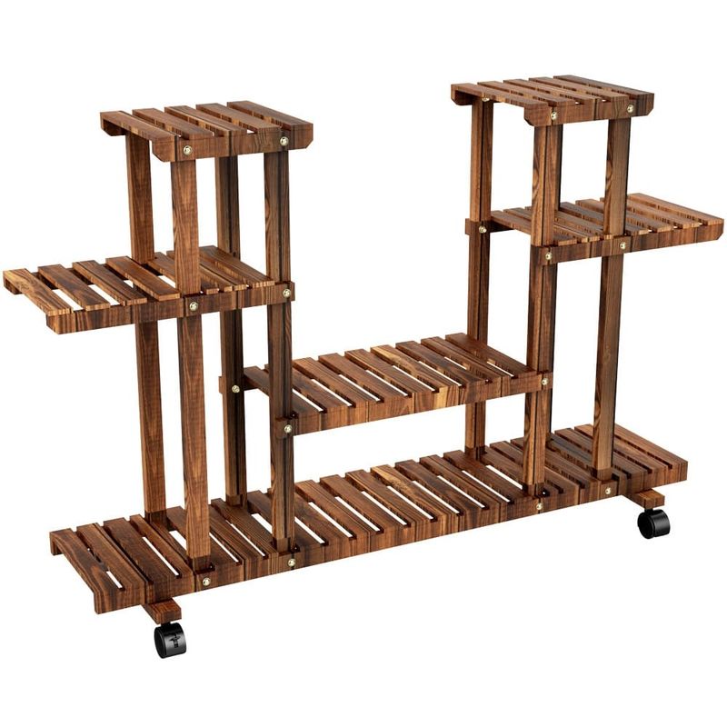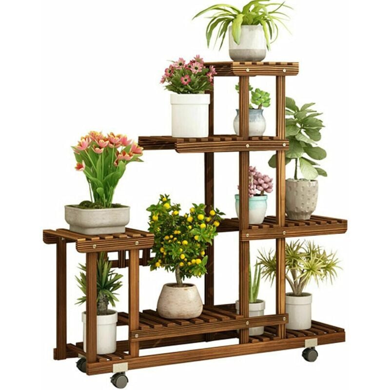 Yaheetech - tagère à Fleurs en Bois Supports de Pots à roulettes Porte Plante 9 Tablettes Escalier Présentoire de Jardin 124,5 x 33 x 120 cm