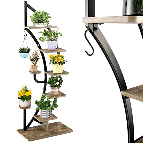 RELAX4LIFE Porte-Plante en Forme de Lune, Étagère à Fleurs à 5 Niveaux en Métal, Grand Présentoir Plante, Crochet de Suspension, Décoratoin Intérieure pour Salon Balcon (Naturel, 1)