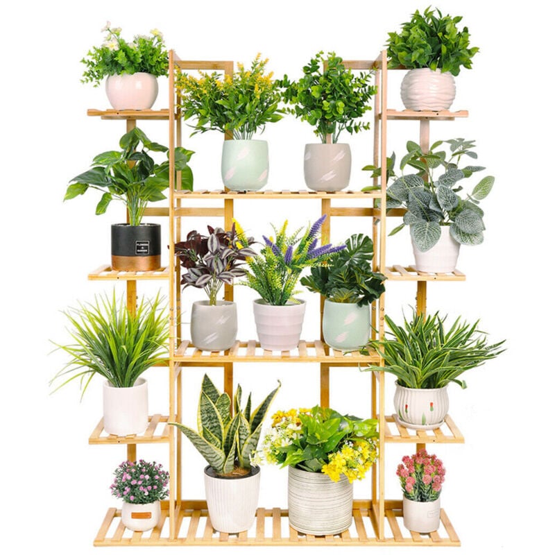 Unho - tagère Plante en Bambou Porte Plante à 9 Tablettes 123x89x19.5cm Support Pot de Fleurs Design Vertical pour Maison Balcon Terrasse Jardin Café