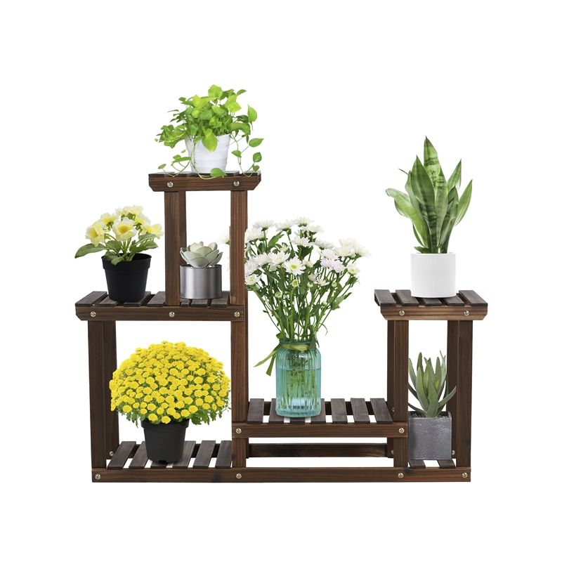 Étagère à Fleurs en Bois Supports de Pots Porte Plante Bois 6 tablettes - dim. 98L x 28l x 95H cm - Bois de Sapin traité carbonisation pour Intérieur