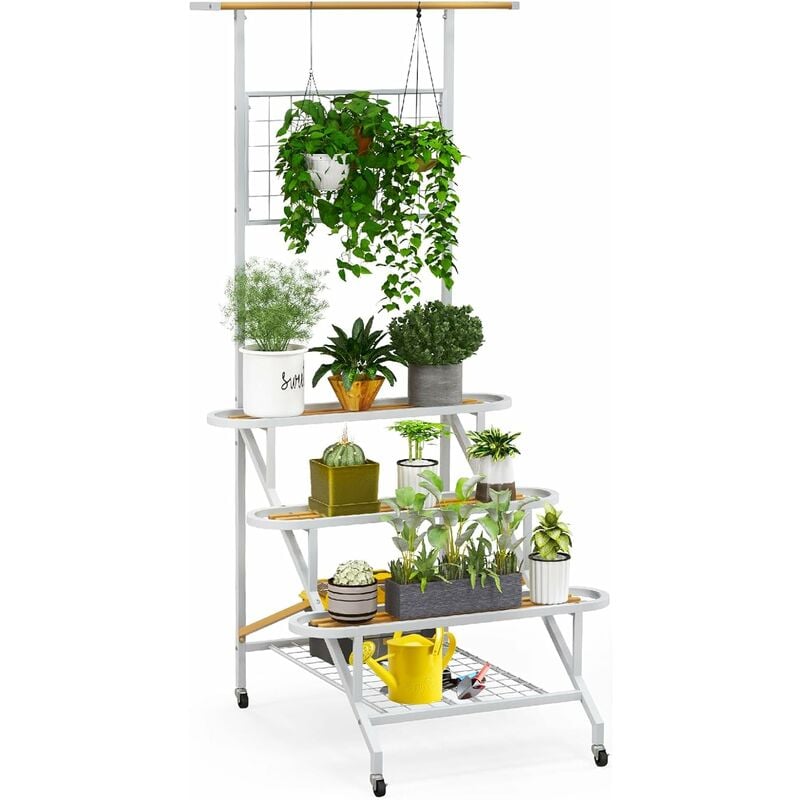 Bamworld Support Plantes Intérieur Haut, Étagère Plante Métal 4 Niveaux Pour Plusieurs Plantes, Porte Plante Extérieur Pour Terrasse, Jardin, Balcon, Salon, Chambre.