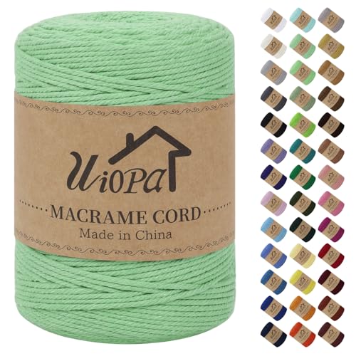 Uiopa Corde Macramé 3mm x 300m Fil Macrame Coton Naturel Ficelle Cordelette Couture Bricolage Cordon pour Macrame Mural, Porte Plante Mural, Decoration Mariage, Rideau, Emballage Cadeau (Vert)