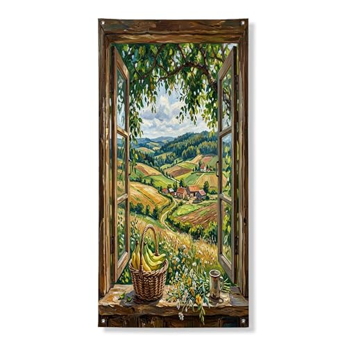 Bannière décorative pour porte d'entrée, 91,4 x 182,9 cm, pour fenêtre de campagne, panier de fruits à suspendre pour porte d'entrée, plantes d'intérieur et d'extérieur