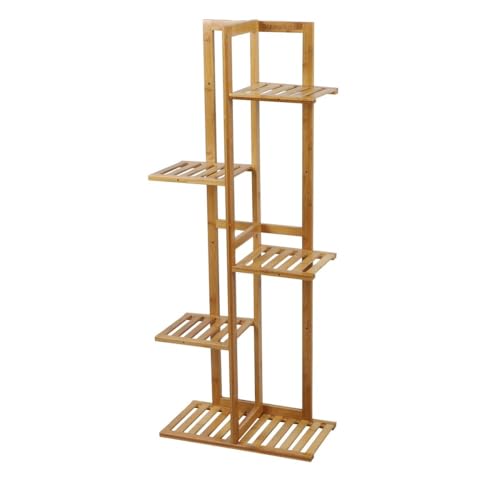Ribelli 5 Niveaux Support pour Plantes, Étagère pour Plantes en Métal Bois, Porte Plantes D'intérieur pour Plusieurs Plantes, Support Pot de Fleur le Balcon du Jardin, Salon, Bureau, Couleur bois