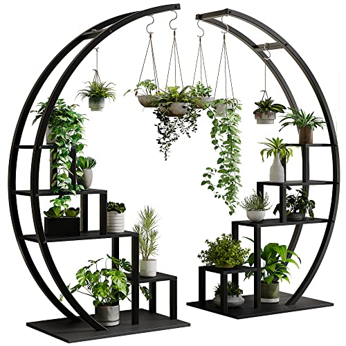 GarveeLife Support Pour Plantes En Métal à 5 Niveaux, Étagère à Fleurs Avec 4 Crochet, Porte Plantes En Forme d'Échelle Et De Demi-Lune, Pour Salon, Balcon, 120 x 40 x 142 cm (Noir)
