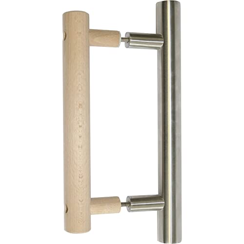 Sentiotec Poignée de porte de sauna LA 20 mm - En bois - Intérieur et extérieur en acier inoxydable - Pour l'intérieur et l'extérieur