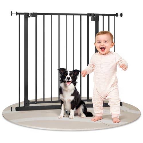 YARDIN Barrière de protection pour porte d'escalier sans perçage - 105-115 cm - Pour chien - Fermeture automatique - Ouverture à une main - Arrêt à 90° - Noir