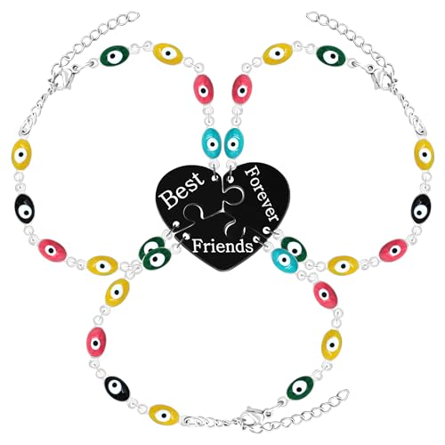Uloveido Lot de 3 bracelets puzzle assortis en forme de cœur - Bracelets de protection contre le mauvais œil - Cadeau d'amitié porte-bonheur pour filles, Métal, Pas de gemme