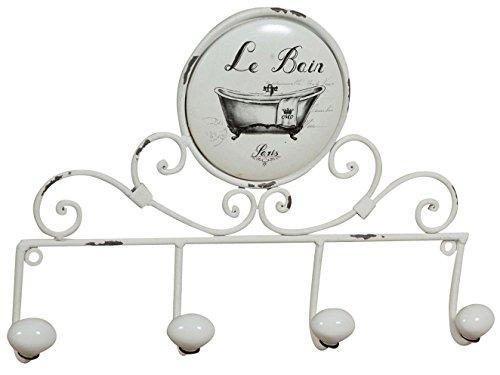 Biscottini Porte-serviettes mural L37,5xPR6,5xH25,5 - Porte-serviettes de bain en fer forgé - Porte-serviette blanc - Accessoires de salle de bain