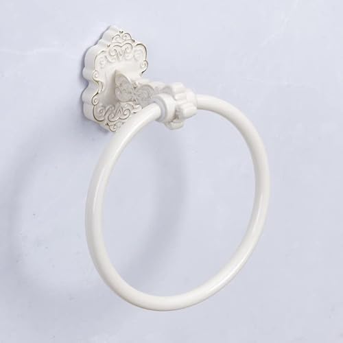SDH Anneau Porte-Serviette de Salle de Bain Style Vintage Blanc et doré – Support Mural pour Cuisine et Salle de Bain – Lot de 1 Anneau de Suspension Robuste en Aluminium
