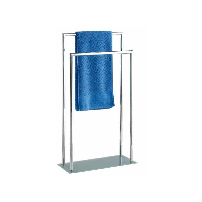 Wenko - Porte serviettes salle de bain sur pied Style, 2 barres porte serviette, Acier inox et base en verre trempé mat, 46x82x20 cm, brillant