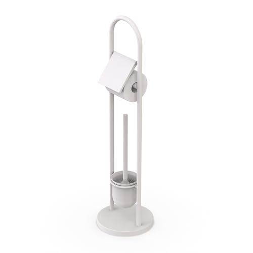 Ensemble WC Relaxdays, INOX, H x P : 79 x 22 cm, Porte-Papier Toilette sur Pied, Brosse WC avec Support, Blanc