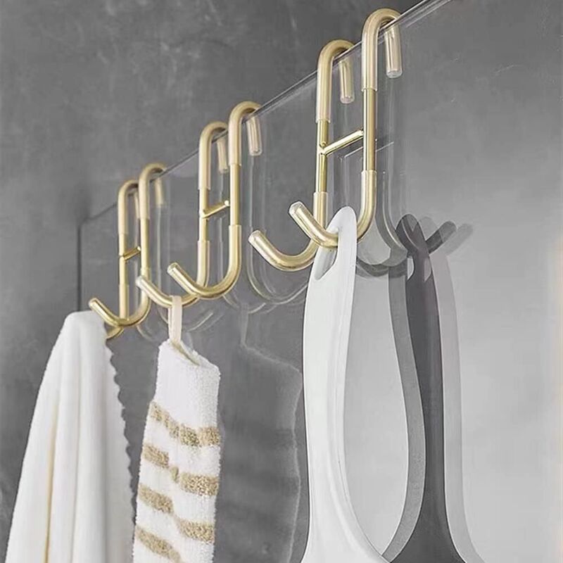 Csparkv - 1 pcs Crochet porte-serviette autocollant en acier inoxydable pour salle de bain, cuisine, garage - Doré