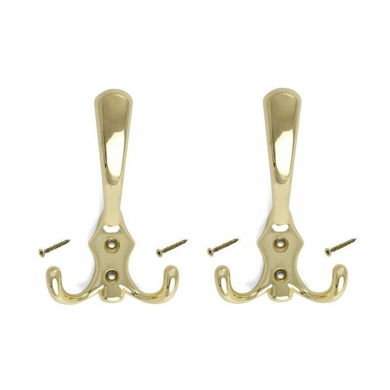 Cyclingcolors - 2x Crochet métal finition doré or poli mural avec vis xl Cuisine Salle de bain Porte manteau Serviette Sac Couvert Vêtement Dressing